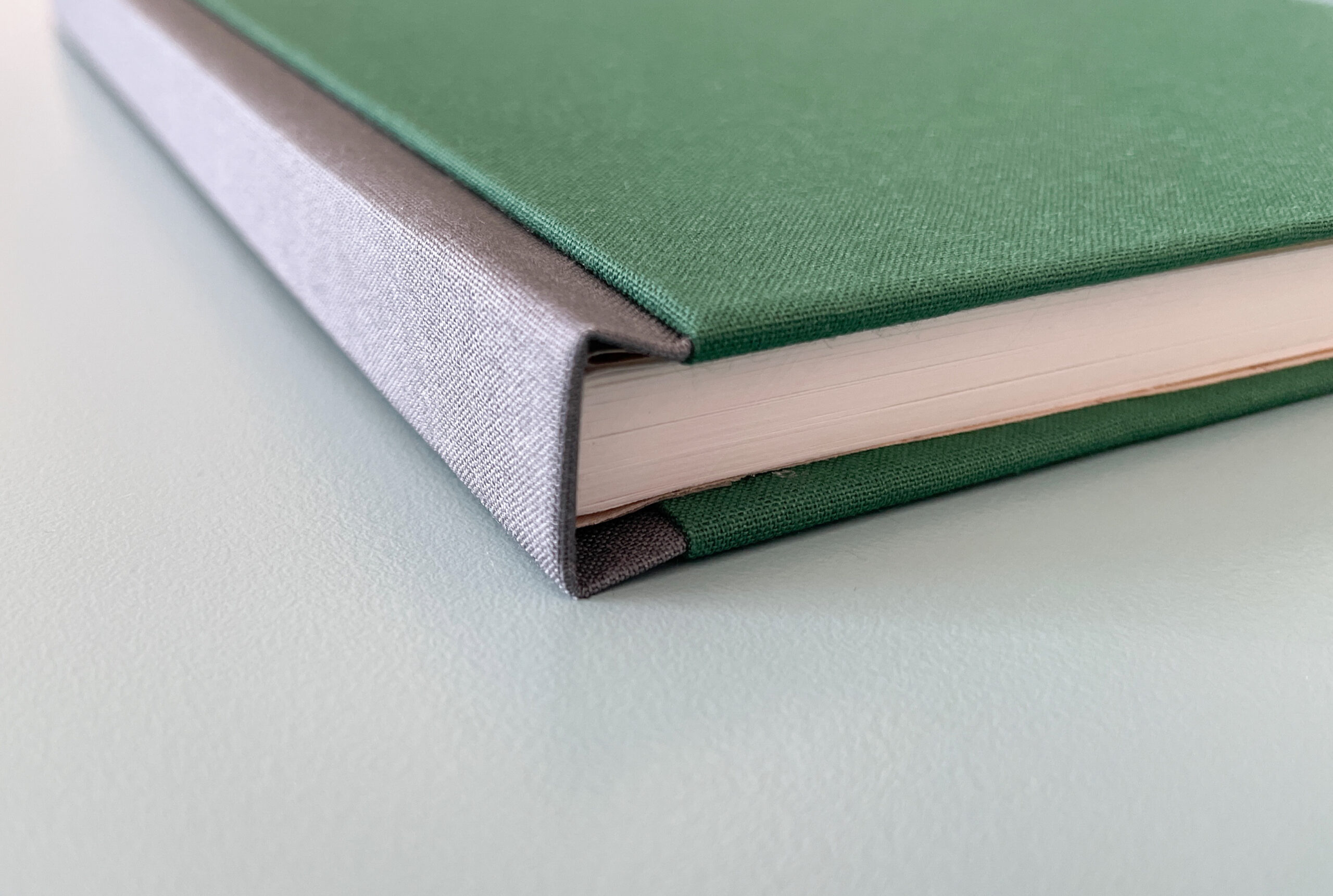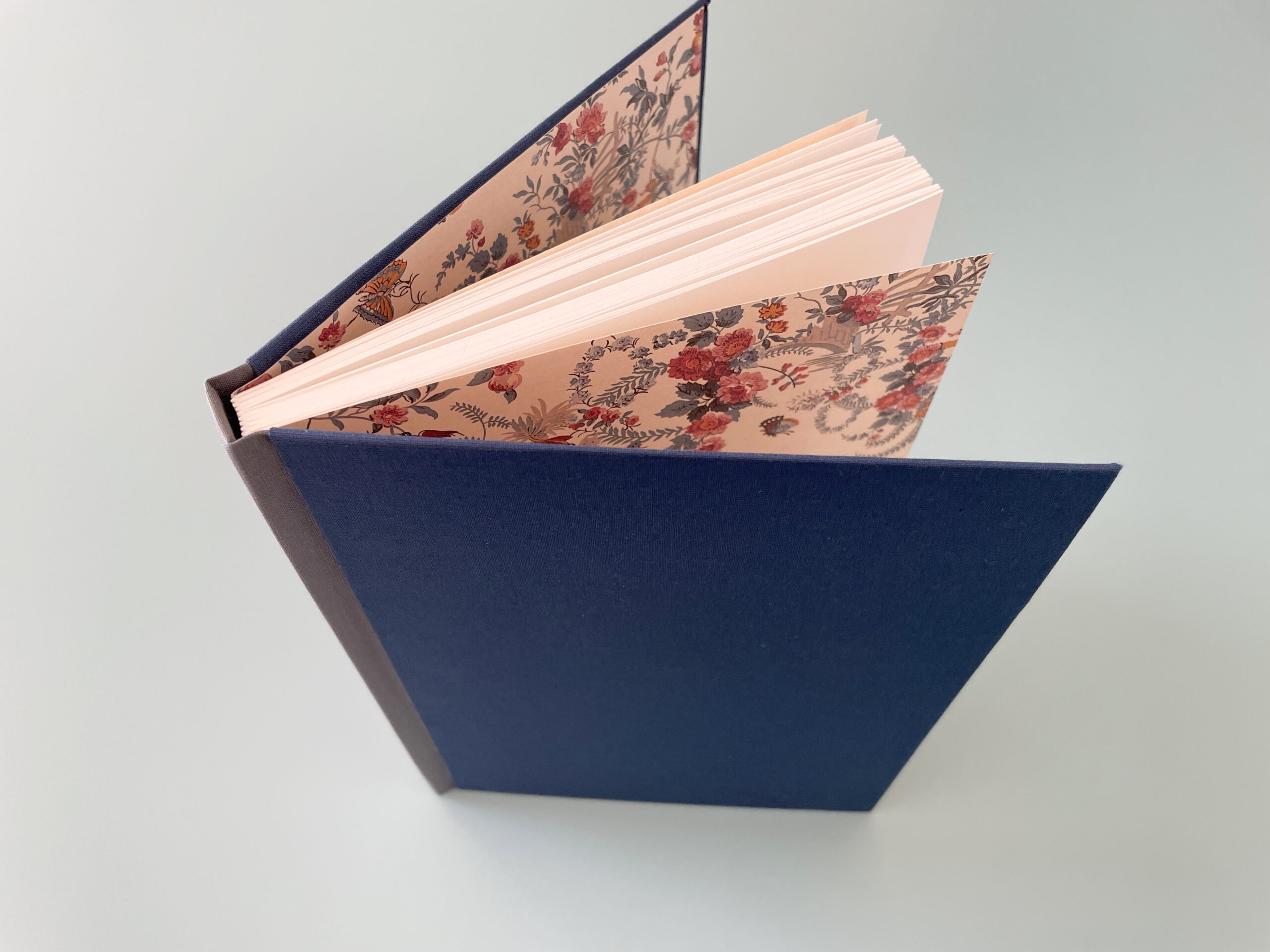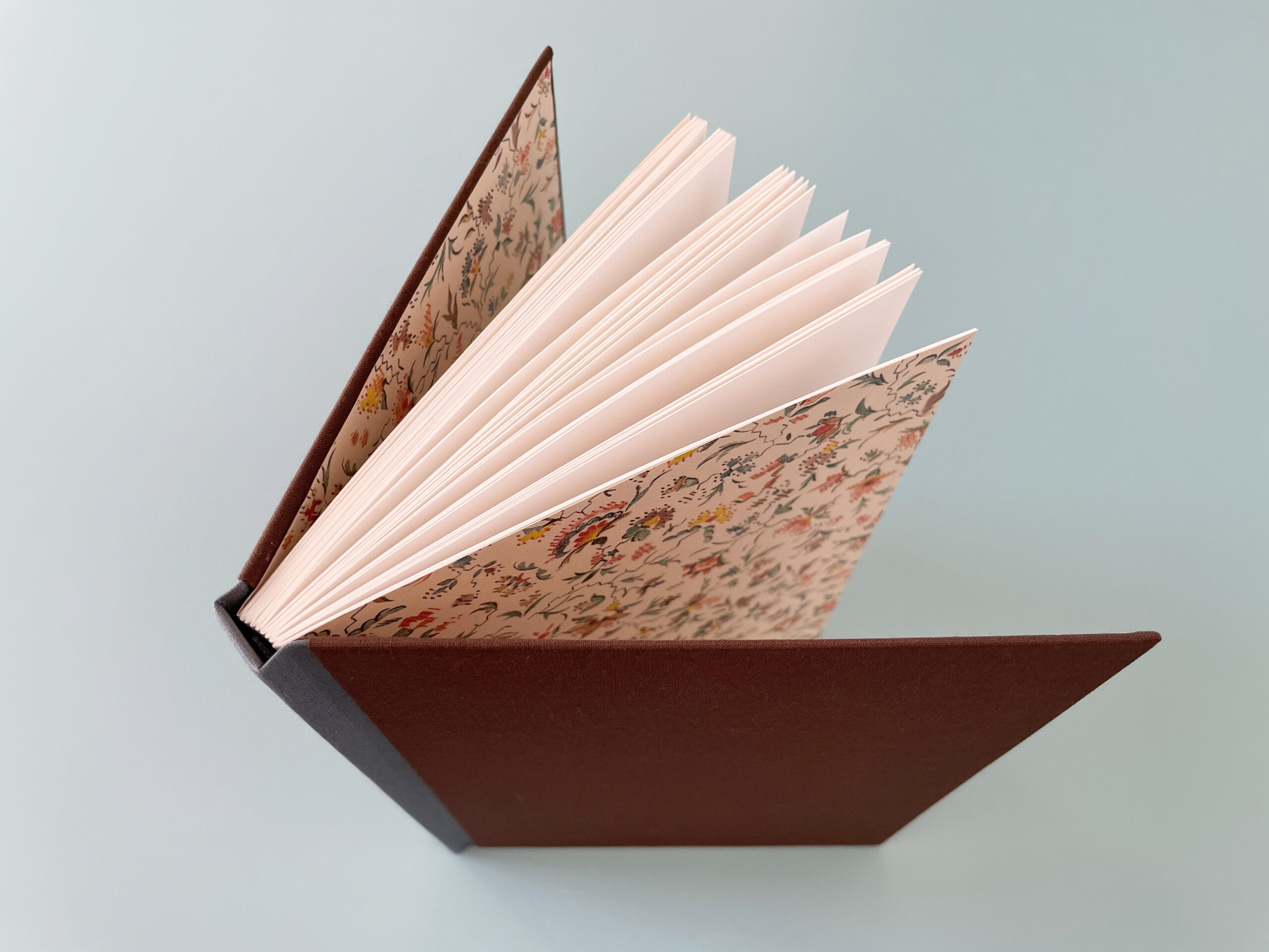 Each book is carefully sewn and cased into sturdy boards, then wrapped in richly coloured bookcloth with a contrasting grey cloth spine — the defining detail of the series. Inside, decorative endpapers inspired by 19th century French designs add a subtle note of charm and character. Available in five curated shades — blue, red, green, yellow, and brown — Fleur celebrates colour, craftsmanship, and quiet elegance: minimal in appearance, tactile in use, and made to be kept for years.